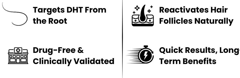 Pumpkin Seed Oil – Rich in phytosterols and fatty acids that help naturally block DHT—the hormone responsible for hair loss—while deeply nourishing the scalp and promoting denser, fuller regrowth.